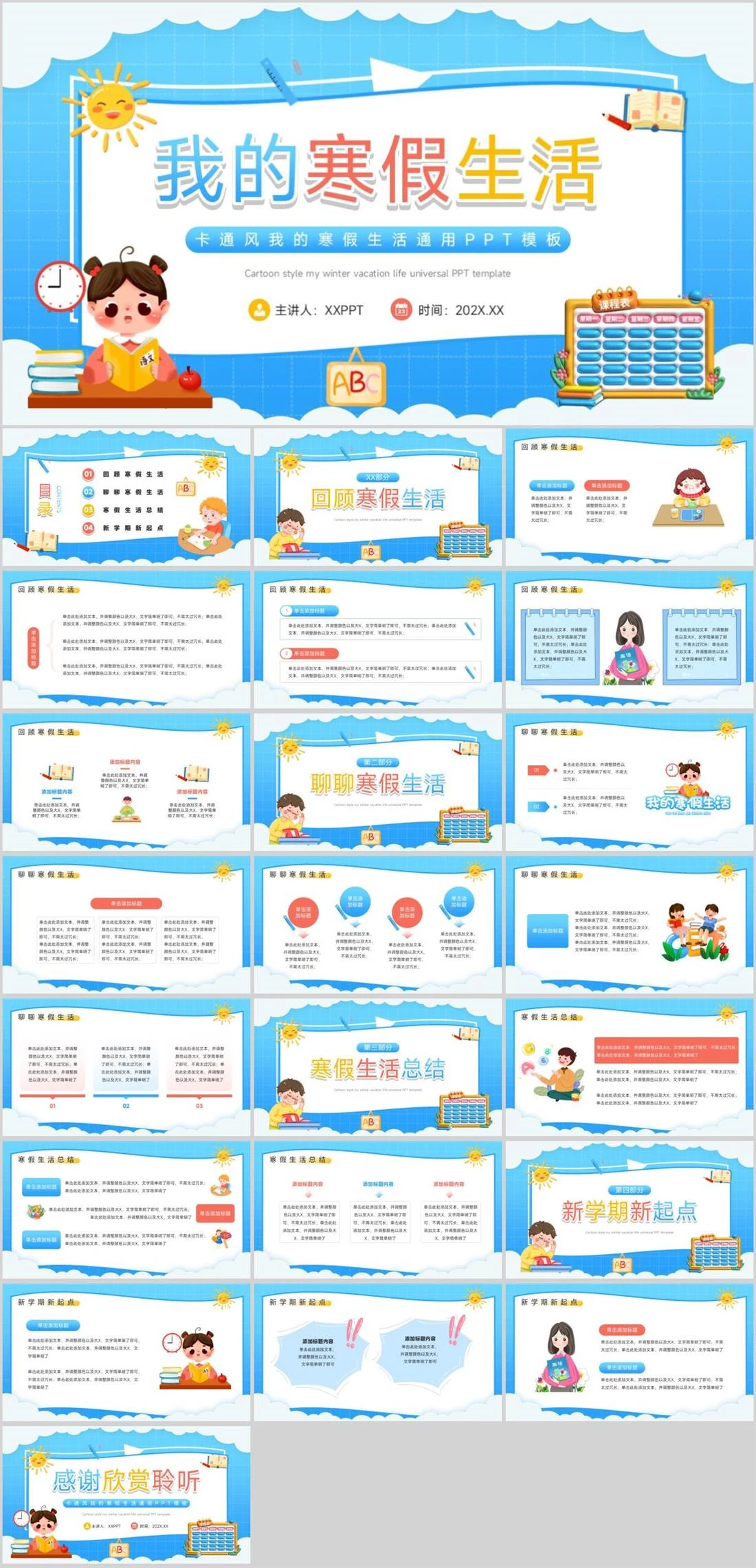 卡通风我的寒假生活通用PPT模板Cartoon style my winter vacation life universal PPT template主讲人:XXPPT时间:202X.XX我的寒假生活我的寒假生活寒假生活,4,