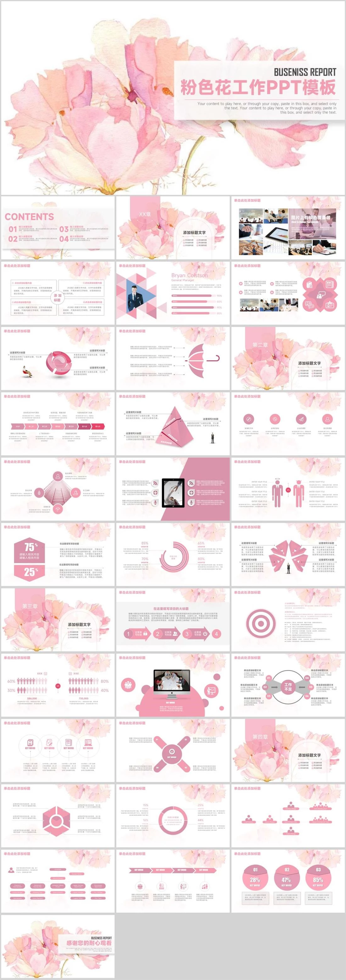粉色花工作PPT模板BUSENISS REPORTYour content to play here, or through your copy, paste in this box, and select only the text. Your content to 62套清新粉色系,模板,清新粉色系,模板,10,