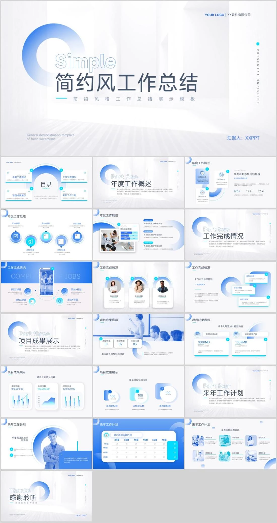简约风工作总结Simple简约风格工作总结演示模板YOUR LOGOXX软件有限公司 General demonstration template of fresh watercolor汇报人:XXPPTPRESENTATION//SLIDE极简商务,2337,