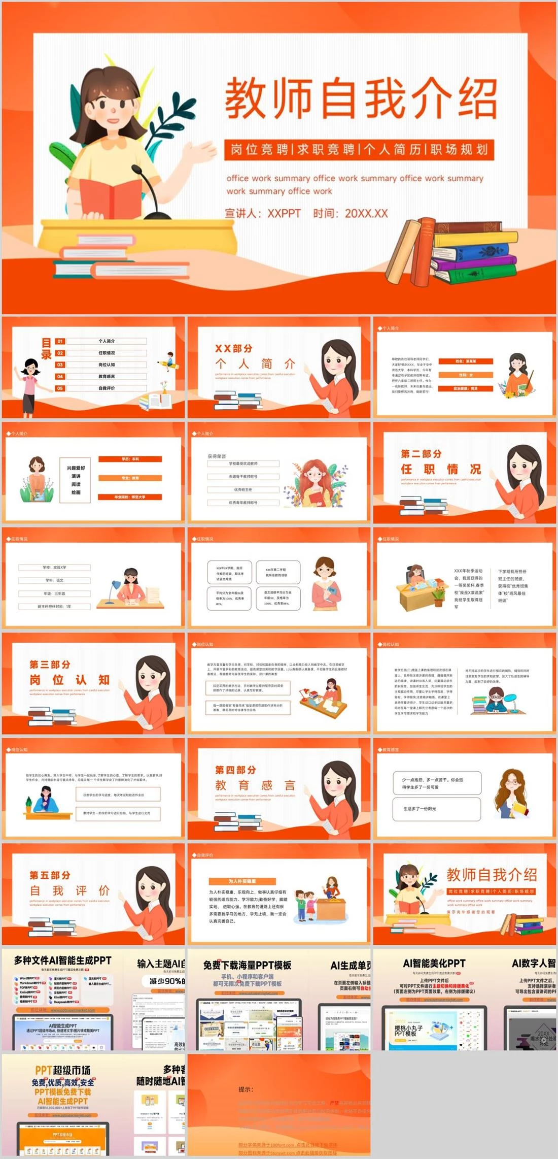 教师自我介绍office work summary office work summary office work summary work summary office work宣讲人:XXPPT 时间:20XX.XX岗位竞聘|求职竞聘|个人简历|职场规划老师介绍,885,